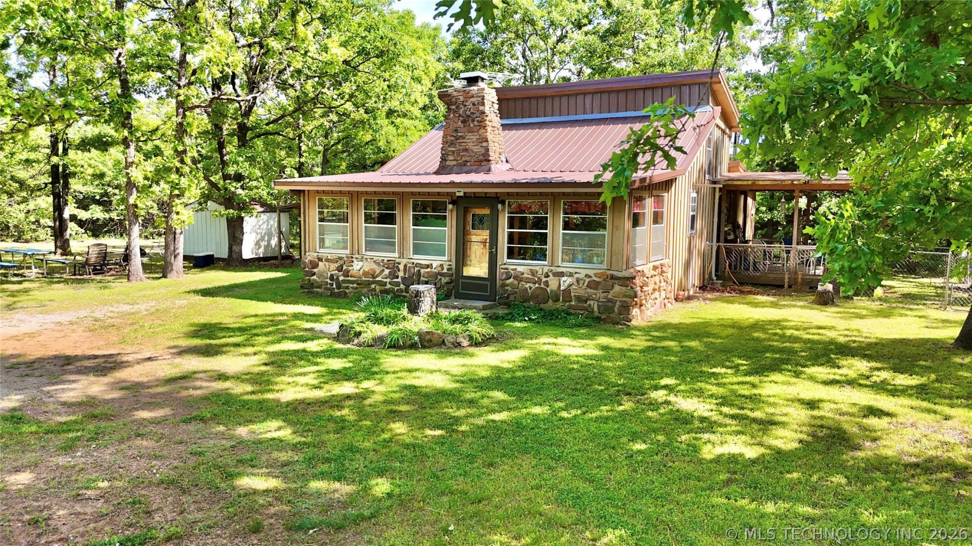 Unique opportunity to own two residences on approximately 10 wooded acres in a quiet country setting just minutes from Enterprise with a Quinton, Oklahoma address. The primary home is a two-story residence offering three bedrooms and one and one-half bathrooms, a cozy wood-burning fireplace, durable metal roof, covered side patio, and carport. The property also includes several outbuildings, two of which are equipped with electric, providing ample space for storage, workshop areas, or hobby use. Situated north of the main home is a second two-story cabin featuring three bedrooms and one and one-half bathrooms, along with its own carport and storage building, making it ideal for extended family living, guest quarters, or potential rental income. The heavily wooded acreage offers privacy, scenic surroundings, and abundant wildlife, including whitetail deer, creating a true country retreat while still being conveniently located near Enterprise. This one-of-a-kind property provides versatility, income potential, and multiple living options in a highly desirable rural location.